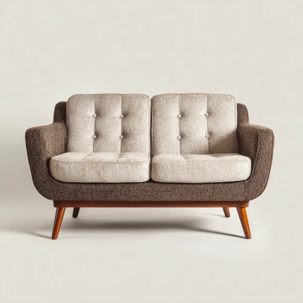 Retro Sofa Holz Stoff 2-Sitzer 150x85x90 cm – Beige/Braun